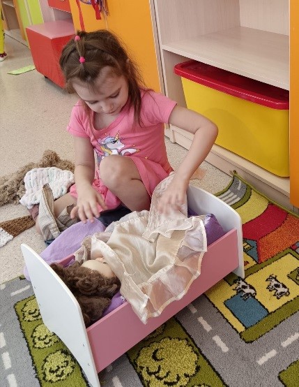 Без сюжетно-ролевых игр не обходится ни один день, проведенный ребенком в детском саду. Дети в нашей средней группе охотнее всего играют в «Дочки- матери». Целью этой игры является формирование представления о семейных отношениях, знакомство с домашними обязанностями для каждого члена семьи, воспитание доброжелательного, заботливого отношения к близким людям. Также дети учатся примерять на себя роль мамы и папы.