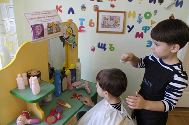 «Парикмахерская» – еще одна сюжетно-ролевая игра, которой очень увлекаются дети. Оборудование позволяет воссоздать соответствующую обстановку, помочь ребенку ощутить себя настоящим мастером. Создавая интерьер, ребята не только развивают творческие способности, но и узнают, как много труда нужно вложить, чтобы получить желаемый результат. Дети принимают на себя роль и выполняют соответствующие игровые действия, используя инструменты парикмахера и называя их.  В эту игру с удовольствием играют как девочки, так и мальчики. Сюжетно-ролевые игры знакомят детей с людьми разных профессий, и мы надеемся, что они помогут им в выборе профессии в будущем.