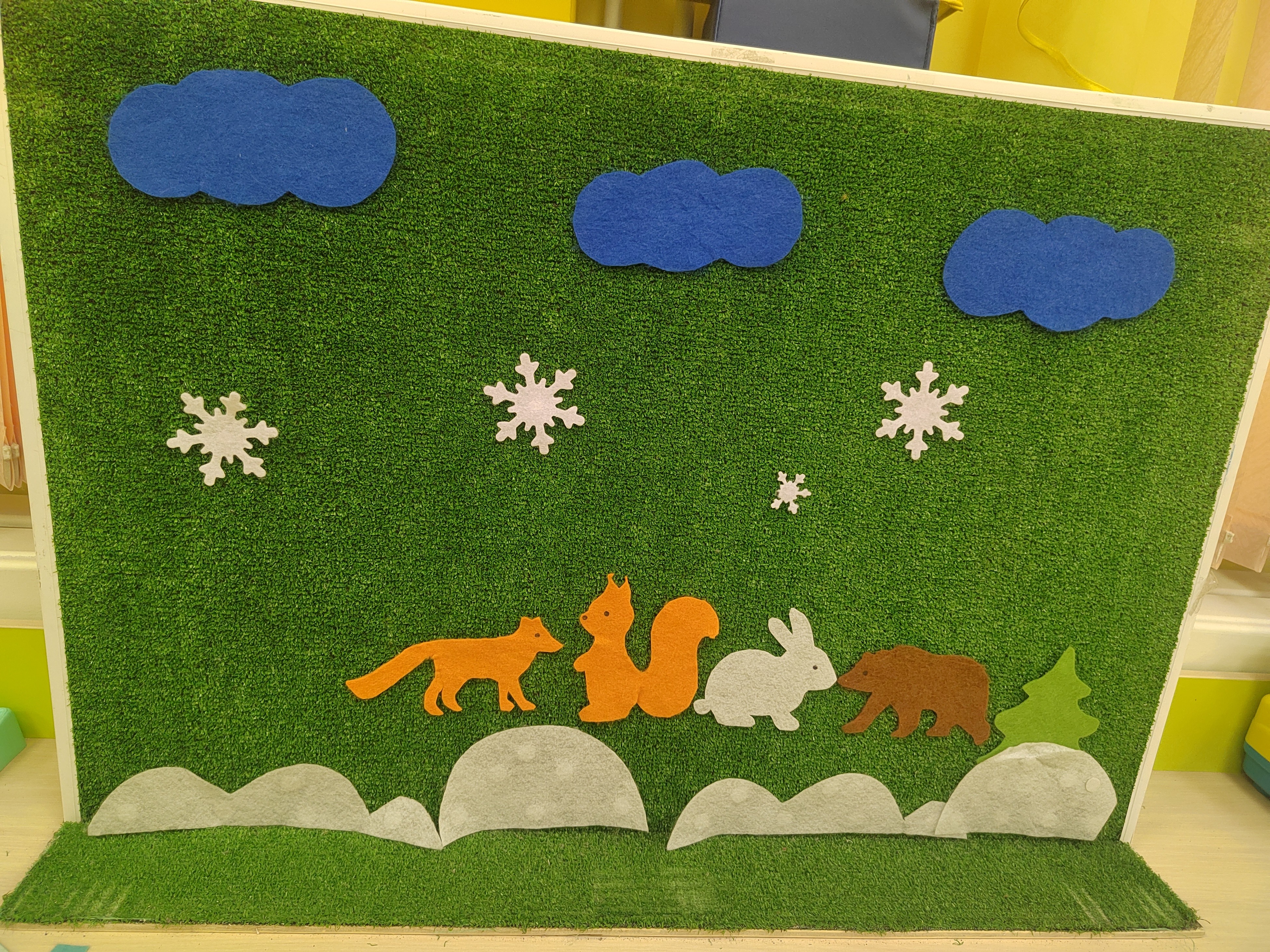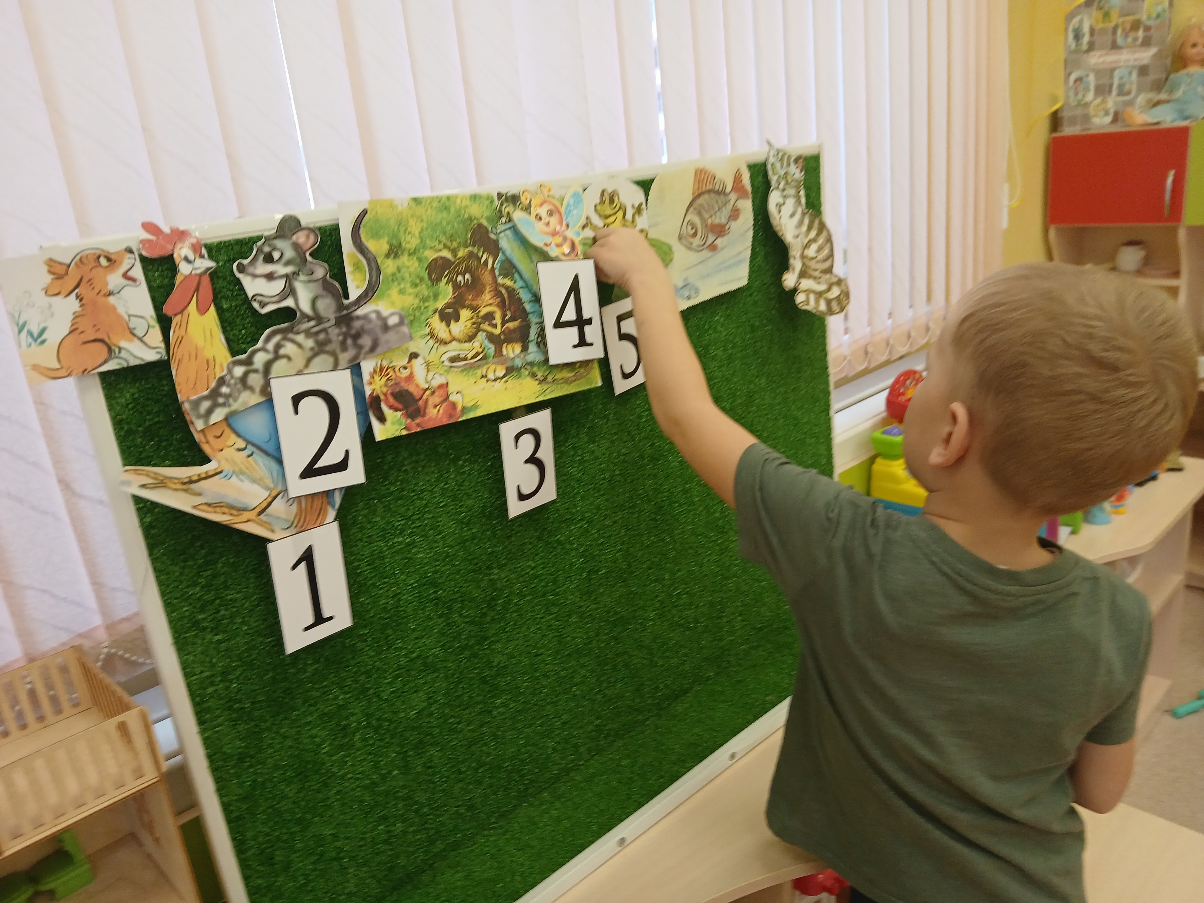 «Живые» сказки. Это наше самое любимое занятие. Одним из наиболее популярных методов раннего детского образования является театрализованная деятельность, основанная на классических русских народных сказках. Поэтому мы не просто читаем «Теремок» или «Колобок» – мы его «оживляем»! Дети по очереди выходят и прикрепляют персонажей на доску, разыгрывая сюжет. Фигурка Колобка «убегает» от Зайца и Волка, а в «Теремке» один за другим «поселяются» звери. Эта игра прекрасно развивает речь, память и умение последовательно излагать историю. Ребенок здесь – не пассивный слушатель, а настоящий режиссер и актер.