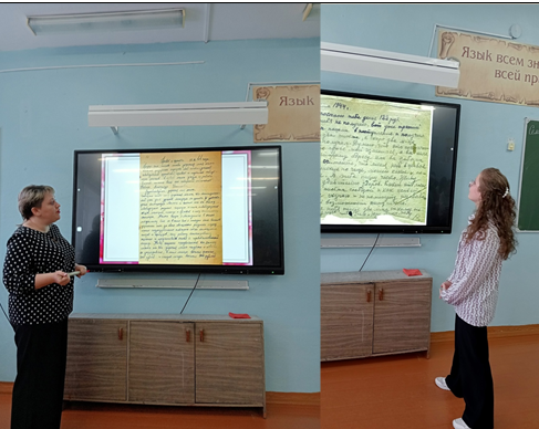 В 8 классе, предварительно изучив письма военной поры, их стиль, язык, пишем сочинение-письмо по картине А. И. Лактионова «Письмо с фронта» от лица солдата своей семье. С обучающимися 9-10 классов пишем письма участникам СВО.