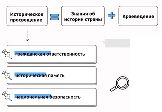 Историческое просвещение – это специально организованная деятельность по популяризации знаний об историческом прошлом, направленная на достижение личностных результатов, ценностных установок и противодействие фальсификациям истории России.